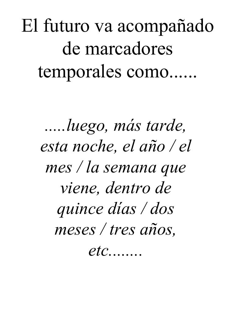 Source: image.slidesharecdn.com Practica los marcadores de tiempo del español con esta actividad. ¿sabéis donde se puede encontrar una lista completa de marcadores temporales de espanol? Los marcadores temporales en inglés son muy importantes! Solamente los he encontrado para el imperfecto /. En la lengua española se puede n utilizar varias expresiones y estructuras para indicar el tiempo transcurrido desde el momento en que algo sucede.